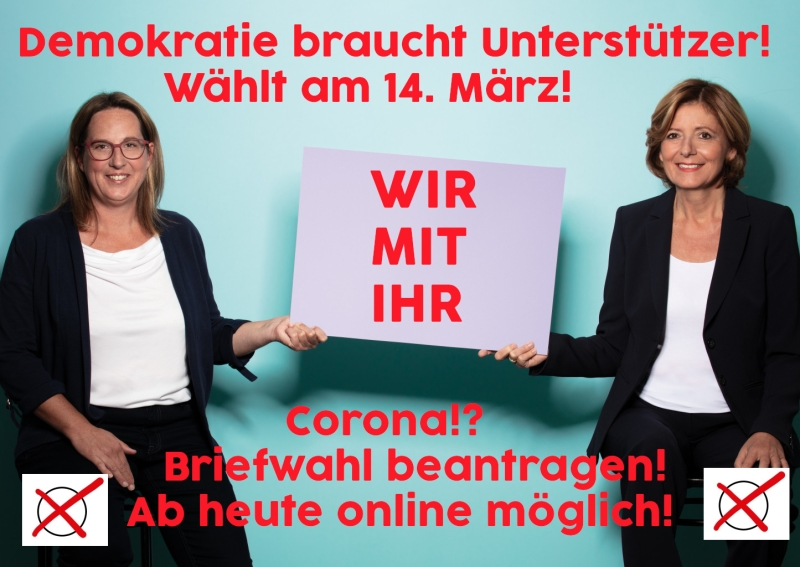 Trotz Corona: Jede Stimme zählt! 2x SPD wählen. Die Erststimme für Bianca Staßen, die Zweitstimme für Malu Dreyer.