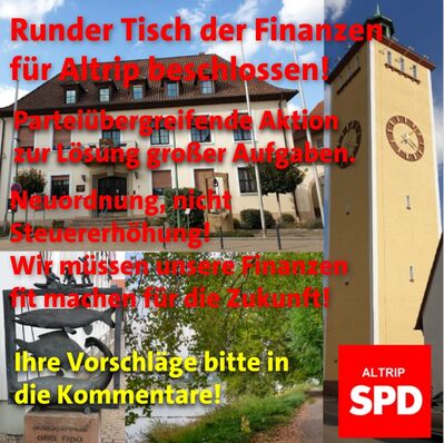 Die SPD Altrip geht ohne Vorbedingung in den Runden Tisch der Finanzen. Wir sehen darin eine Chance die Herausforderungen der Zukunft zu bewältigen: