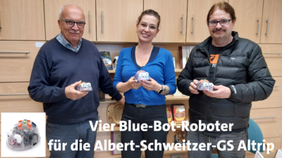 Markus Hofacker und Dr. Peter Bärenz, denen die Schulbildung besonders am Herzen liegt, haben der Schule vier kleine Roboter gestiftet. Damit können bereits Zweitklässler lernen wie ein Roboter funktioniert. Sie lernen Steuerungsprozesse zu durchschauen und kleine Programme zu schreiben. Das ist eine Erweiterung des Medienangebots. Was ist der Hintergrund?