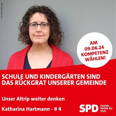 Katharina Hartmann für die Verbandsgemeinde - SPD Listenplatz 15